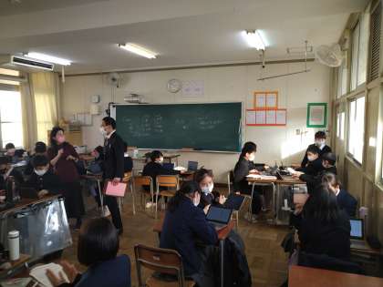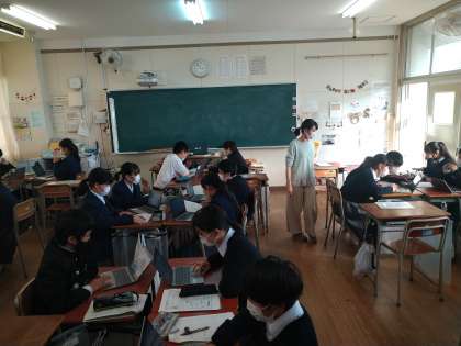 班で協力し、考えています。5W1H、何を、どうして等々、知恵を絞りながら意見を出し合っていました。