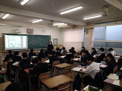 1年生の授業の様子です。社会の授業では、ロールプレイングを導入しながら、歴史の学習を楽しくできました。テストもありました1週間、がんばりました!