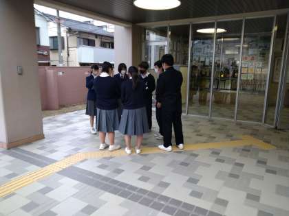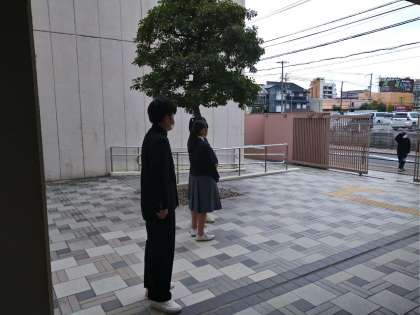 毎朝、風紀委員のみなさんがあいさつ運動に取り組んでいます。あいさつだけでなく、名札のチェック等をしてくれています。最後は打ち合わせをして終了しました。いつもありがとうございます。