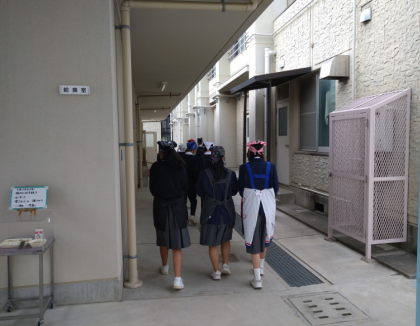 今日は、2年2組の到着が一番でした。4限目が終われば、給食の準備をよろしくお願いいたします。エプロン、三角巾等忘れ物がないようにしてください。