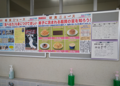 給食室の掲示板には、食に関するポスターが掲示されています。ご覧ください。