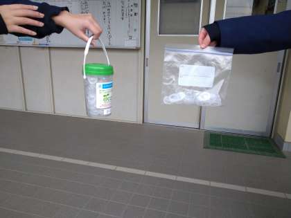 3年生の人が朝早く、保健室に持ってきてくれました。ありがとうございます。コンタクトレンズの空ケースの回収をしています。ご協力よろしくお願いいたします。