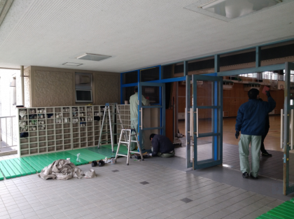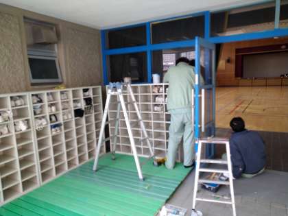 管理作業員の方々が、体育館の扉をきれいに塗装してくださっています。卒業式に向け、きれいな扉に仕上げてくださっています。安全に配慮し、作業をしてくださっています。いつもありがとうございます。