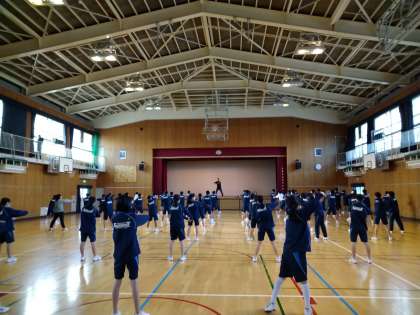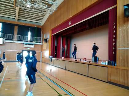 本日は、保健体育の授業として、ABCボクシングジムの会長 松本様にお越しいただき、ボックスフィットに取り組みました。本日は、2年生2コマと1年生1コマの計3時間の講習をしていただきました。