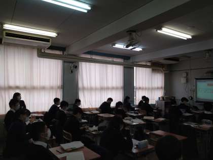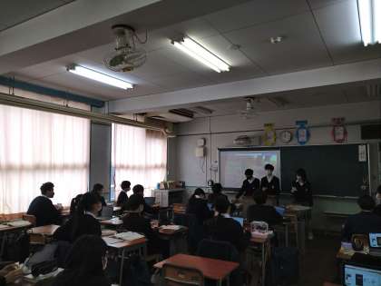 各班で話し合いを行い、プレゼンテーションを行いました。メロスの長所は、正直者。短所は、自己中心的などの意見が出ました。担当の先生からは、「発表の内容に深みを感じました。」、「見ている人が惹きつけられるパワーポイントでした。」などのお褒めのことばがありました。