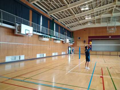 体育館では、バレーボール部が活動をしていました。顧問の先生からのアドバイスを聞き、プレーの向上に努めていました!大会に向けて、がんばってください!
