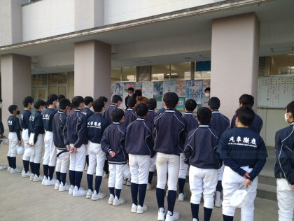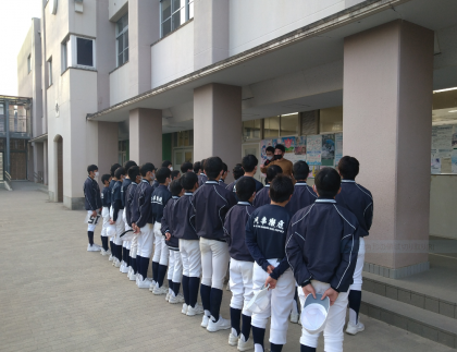 本日の放課後、野球部のミーティングが職員室前で行われていました。職員室にいると拍手の音が聞こえてきました。背番号を貰ったのでしょうか?選ばれた人はチームの代表として、選ばれなかった人は、チームを支えるプレーヤーとして、一致団結して頑張ってください。T-シャツの「凡事徹底」大切なことですね。