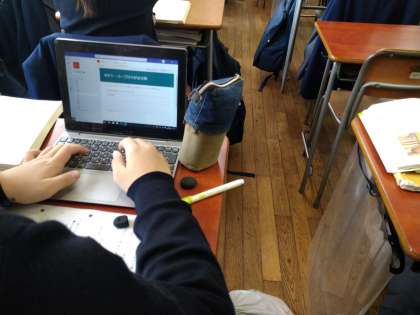 1限目の国語の授業風景です。今回は、小説「ポテト・スープが大好きな猫」を題材に