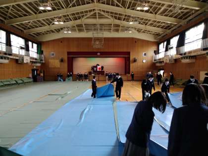 明日の卒業式の会場設営と校内清掃を、2年生の委員と係りのみんさんが、丁寧に取り組んでくれました。先輩のためにがんばってくれました、「ありがとうございました。」
