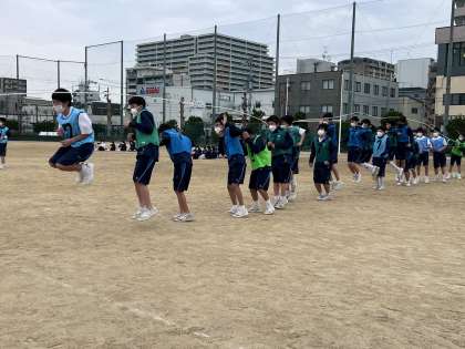 大縄大会の実施方法は、20人飛びとクラス全員で飛ぶ、全員飛びの2種目しました。2回に分けて行われた結果の合計で順位が決まりました。