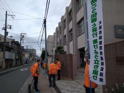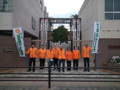 本日は、城東区の保護司のみなさまが朝のあいさつ運動に参加してくださいました。