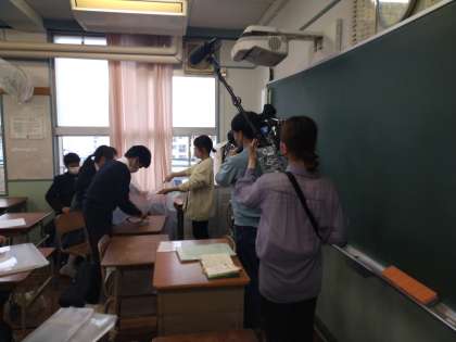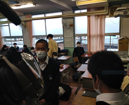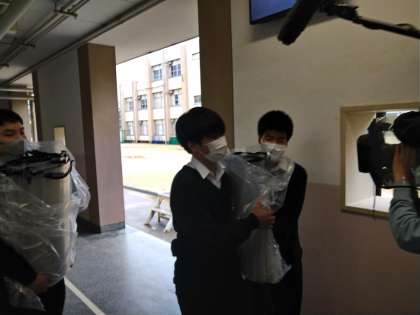本日の放課後に、読売テレビの取材が入りました。学校における新型コロナウイルス感染症に関する「衛生管理マニュアル」の改定に基づき、4月より、給食時に使用していましたデスクシールドの使用を取りやめます。