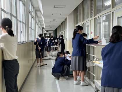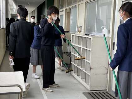 今年度のほこりを払いました。クラス全員で教室等をきれいにしました。1年間使用した教室ともお別れですね。