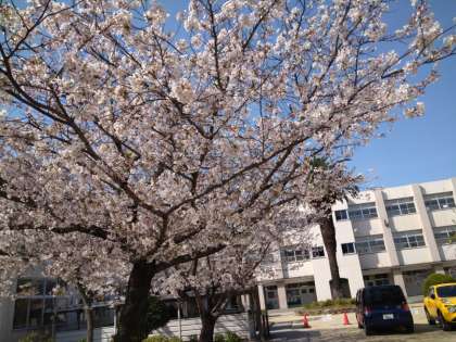 今日から新年度がスタートしました!今日も日中は25℃に達する夏日となりました。いつ観ても校内の桜はきれいに咲いております!