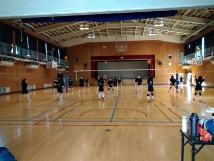 体育館では、バレーボール部が活動をしていました!今日は、高校生の先輩方に、練習に参加していただきました。お気遣いをいただき、感謝ですね。