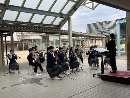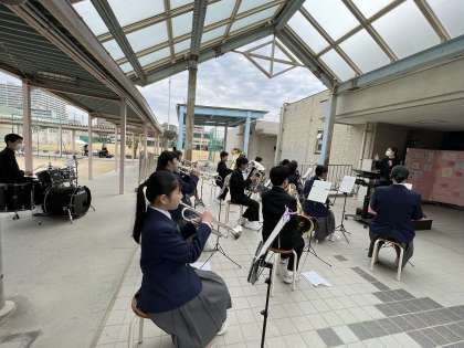 1年生の先生や1年生に関わる職員の教職員の紹介を終え、退場をしました。今年は、吹奏楽部の奏でる曲に乗せての退場でした。吹奏楽部のみなさん、「すてきな音楽、ありがとうございました。」