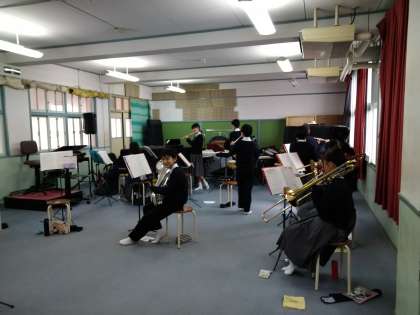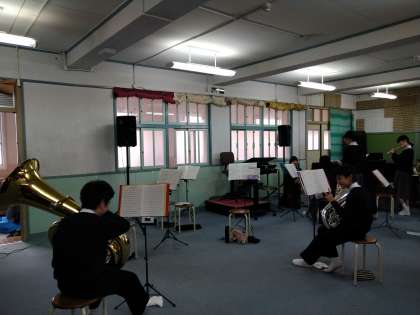 館内では、吹奏楽部が活動をしていました。みんな一所懸命に演奏をしていました。集中して取り組んでいました!!