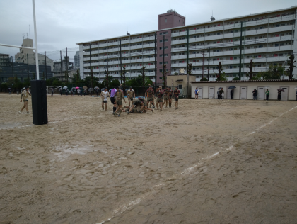 ラグビー部は本日、春季総体の2回戦に臨みました。雨にも負けず、チーム菫として、みんな全力でプレーをしていました。トライも数多く決め、キックも決まりました!見事に勝利し、ベスト8に入りました!おめでとうございます!