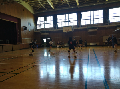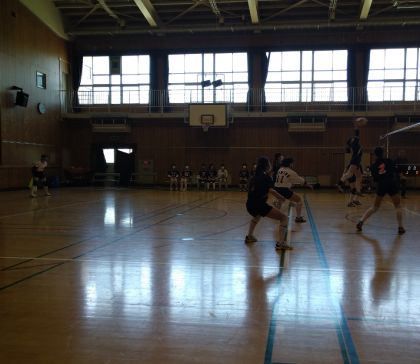バレーボール部は、本日、2試合目に臨みました!放出中学校との試合でした。