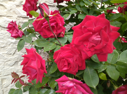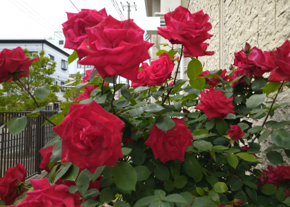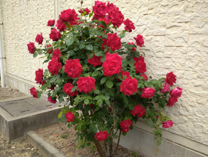 校内にとてもきれいなバラが咲いています。大きく、色鮮やかなバラの花が、たくさん咲いております。桜の花のあとも校内には、きれいな花がたくさん咲いております。今日は曇り空の下でしたが、晴れている時は、太陽の光を浴び、ひと際、きれいに咲き誇っています。
