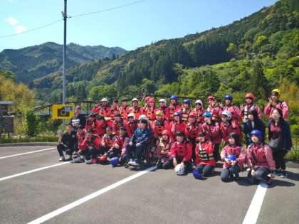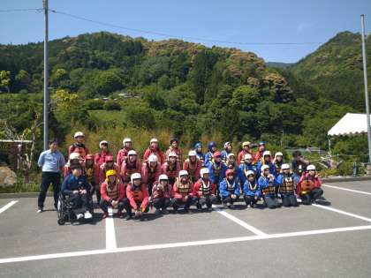 ラフティングのスタート前の学級記念撮影です!