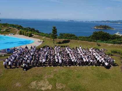 朝食後、鳴門海峡を背景に全体写真を撮りました!