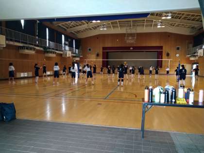バスケットボール部のあと、バレーボール部が活動する姿が見られました。みんなで声を掛け合いながら、頑張っていました!3年生、疲れ知らずですね!みんな一所懸命です!