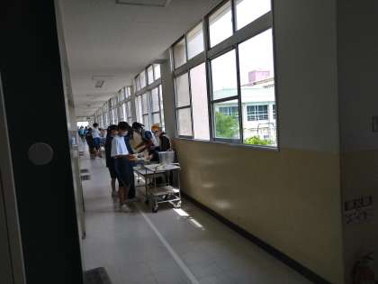 給食当番さんは、エプロン、三角巾を忘れずに。ランチョンマットも忘れずに。