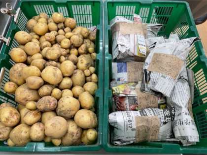 昨日は、すみれ菜園で野菜の収穫が行われました。特別支援学級では、「自立活動」を支援しています。今回は、収穫した野菜を入れる袋を手作りしました。また、その袋の口を閉じるシールデザインもしました!とても上手な絵のデザインと袋でした。お芋もたくさん収穫できましたね。