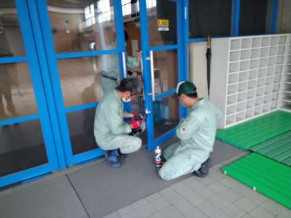 今日も管理作業員の方々は、学校内の清掃、整備をしてくださいました。みなさんが、安全に安心して学校生活が送れるよう、日々、校内の点検をしてくださっています。今日は、体育館の入り口の点検をしてくださいました。「いつもありがとうございます。」