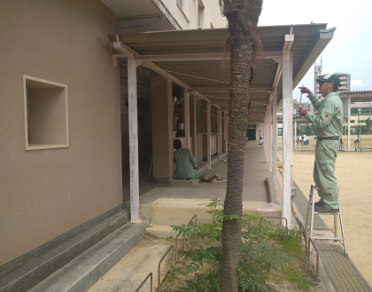 お昼から、管理作業員の方々が、柱をきれいに塗装してくれました。とてもきれいにななりました!暑い中、ありがとうございました。