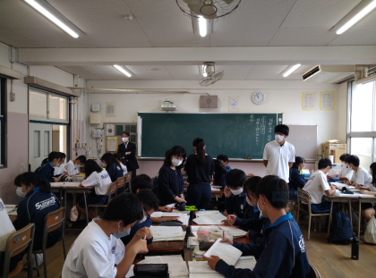 今日は、1年生理科と2年生国語でした。国語は、短歌を味わい、自分の考えを伝え、意見を交流しました。みなさん、しっかりと学習していました。