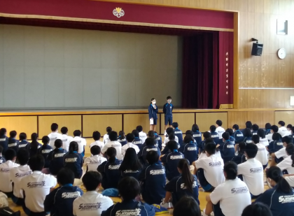 本日は、3年生の学年集会日でした。司会進行は、生徒のみなさんで行っています。