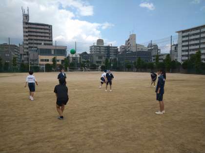 お昼のグラウンドでは、ボール遊びを楽しんでいる人で賑わっていました。ドッジボール、バレーボールを楽しんでいる人がたくさんいました。おしゃべりを楽しんでいる人もおり、みんなそれぞれが楽しく過ごしていました。先生も一緒にバレーボールを楽しんでいました。今日で最終日の実習生の姿もありました!