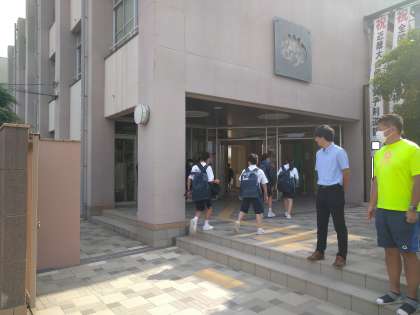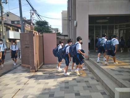 今日も暑い一日でした。水分補給がこまめにできるよう、水筒を忘れずに!朝の登校の様子です。元気いいあいさつを待っています!