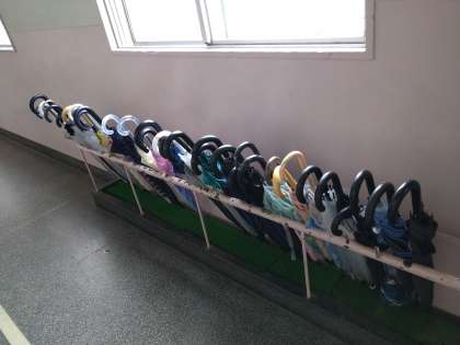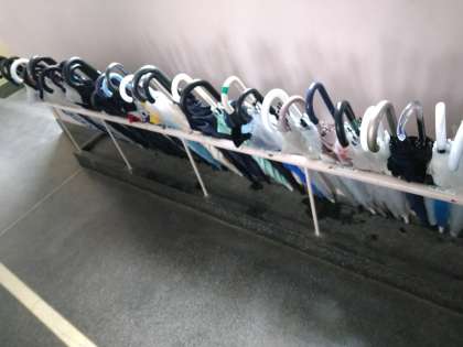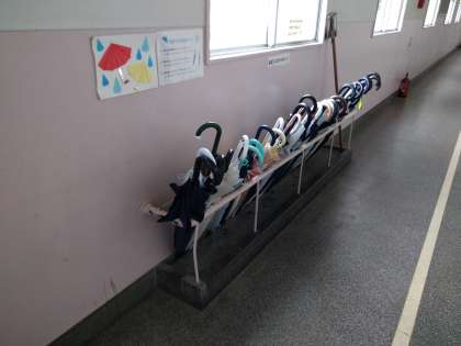 廊下を歩いていると、きれいに並べられた傘が目に留まりました。