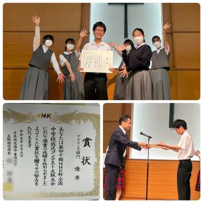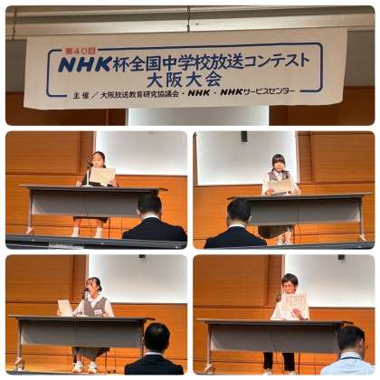 7月9日(日)第40回NHK杯全国中学校放送コンテスト大阪大会の決勝が開催されました。本校からは朗読部門2名、アナウンス部門2名が参加しました。