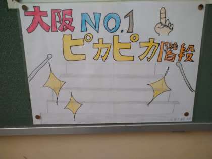 掲示板に「大阪No.1ピカピカ階段」というポスターを発見しました。美化委員のみなさん、素敵なポスターありがとうございます。
