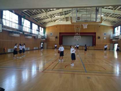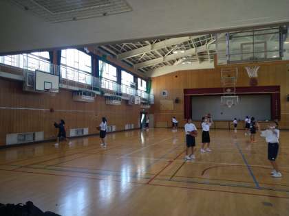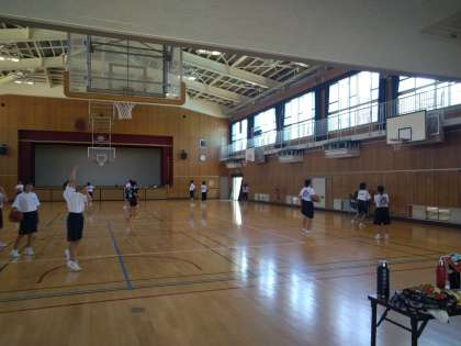 朝は、バレーボール部が熱心に活動しており、昼からはバスケットボール部が意欲的に活動しています!みんなよくがんばっています!