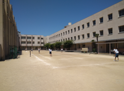 中庭テニスコートでは、ソフトテニス部が活動をしていました。ゲームを行っていました。次の大会に向けて、がんばっていました!卒業生も練習に参加してくれていました。ありがとうございます。