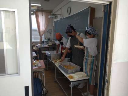 今学期の給食も明日が最後となります。給食調理委員さん、いつも美味しい給食、「ありがとうございます。」また、放送部のみなさん、給食の時間に素敵な音楽の提供、「ありがとうございます。」