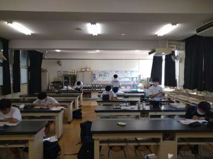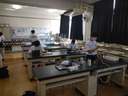 理科室では、理科工作部のみなさんが、実験・自主学習に取り組んでいました。みんな真剣に取り組んでいました!