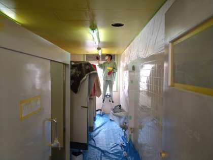 今日も暑い一日でした。そんな中、管理作業員の方々が、トイレの壁の塗装をしてくださいました。いつも校内をきれいに整えていただき、ありがとうございます!