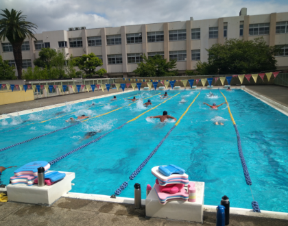 プールでは、水泳部が黙々と泳いでいました!いいフォームですね。