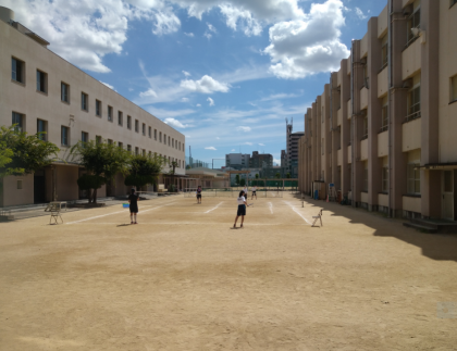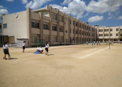 中庭テニスコートでは、ソフトテニス部が活動をしていました!基本練習をしていました。3年生に出してもらったボールを後輩たちがしっかりと打っていました!