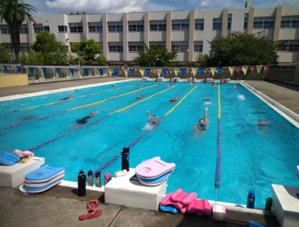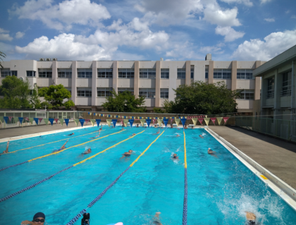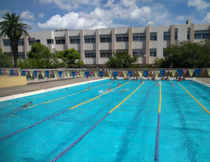 水泳部が迫る大会に向けて、最終調整です!顧問の先生の元気な掛け声のもと、みんな一所懸命に泳いでいます!世界水泳に負けない泳ぎを見せてくれています!!