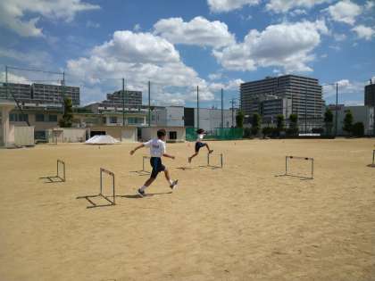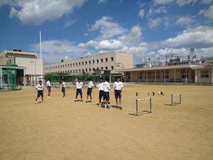 朝から、陸上部が、暑さに負けず元気いっぱいに練習に取り組んでいました。明るく元気です!