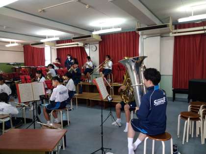 大会が終わっても、次の目標に向かって、練習に励んでいます。廊下まで、素敵な音楽が流れています。暑さを吹き飛ばす、いい曲です!