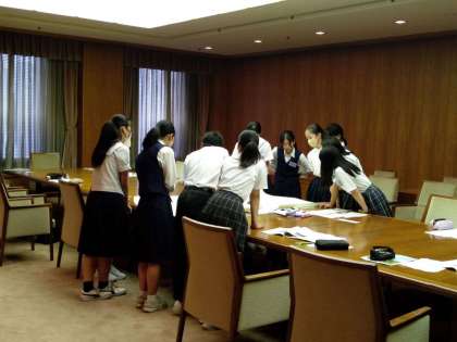 委員会ごとに分かれて、大阪市を良くするための付箋トークをしています。