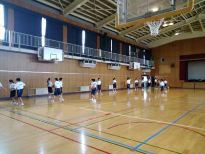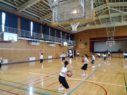 体育館では、剣道部のあと、バスケットボール部が練習に励んでいます。新チームが始動しました。基本練習をしっかりと行っています!